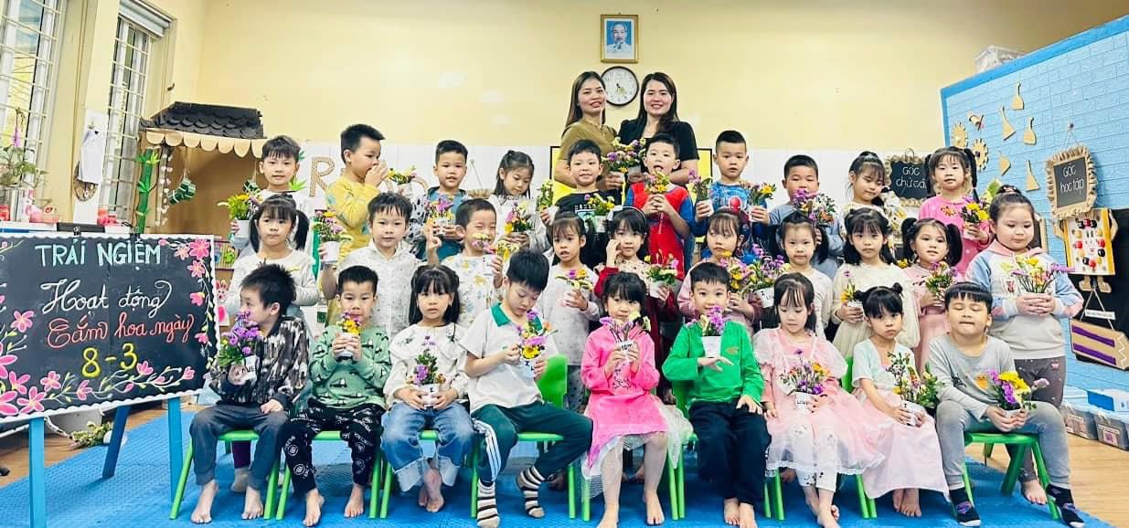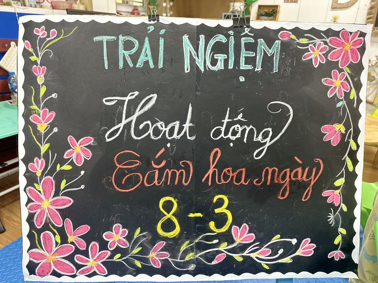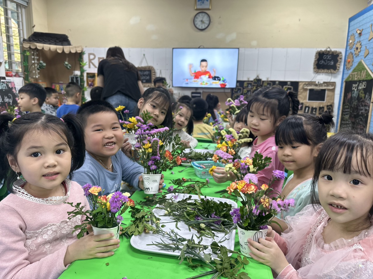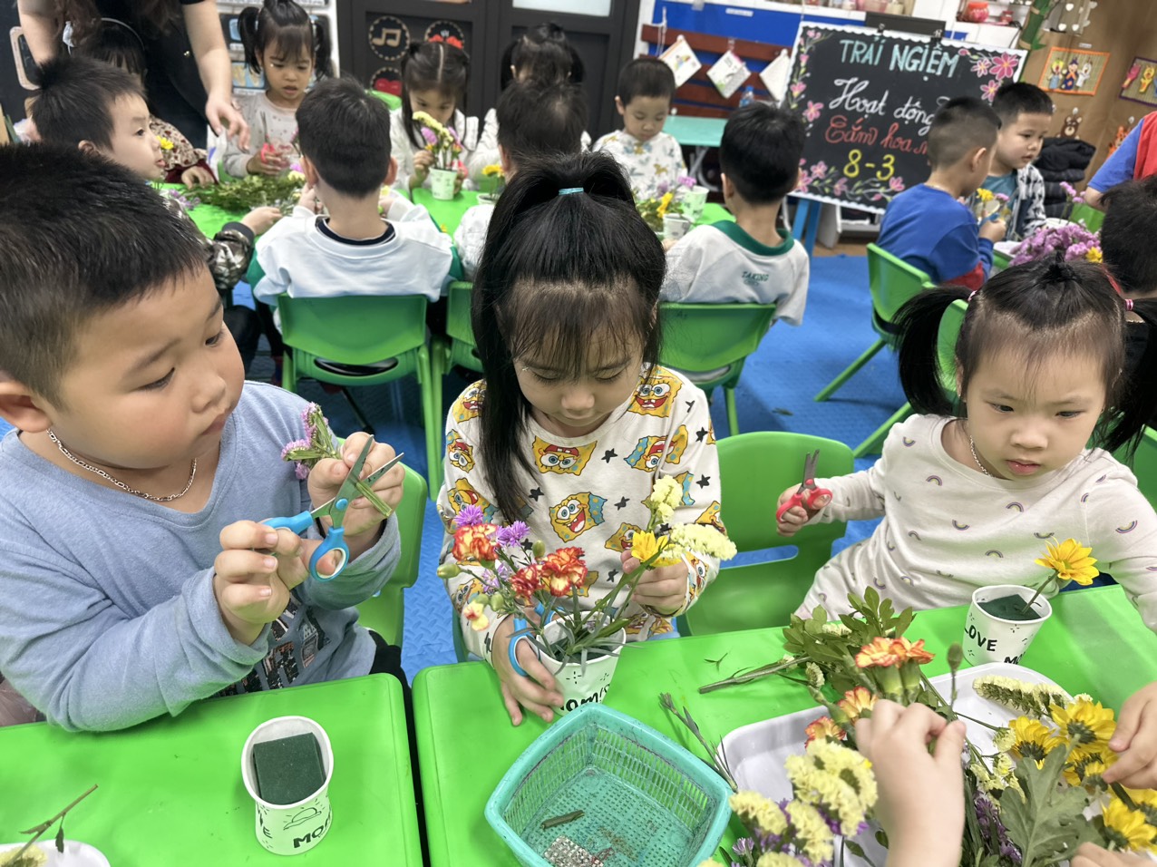 HOẠT ĐỘNG TRẢI NGHIỆM: CHO TRẺ CẮM HOA, LÀM THIỆP TẶNG BÀ VÀ MẸ NHÂN NGÀY 8/3