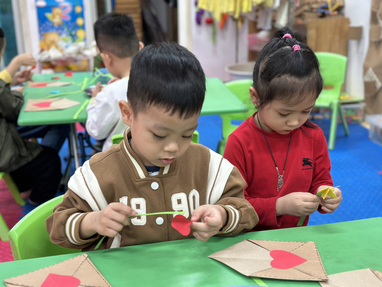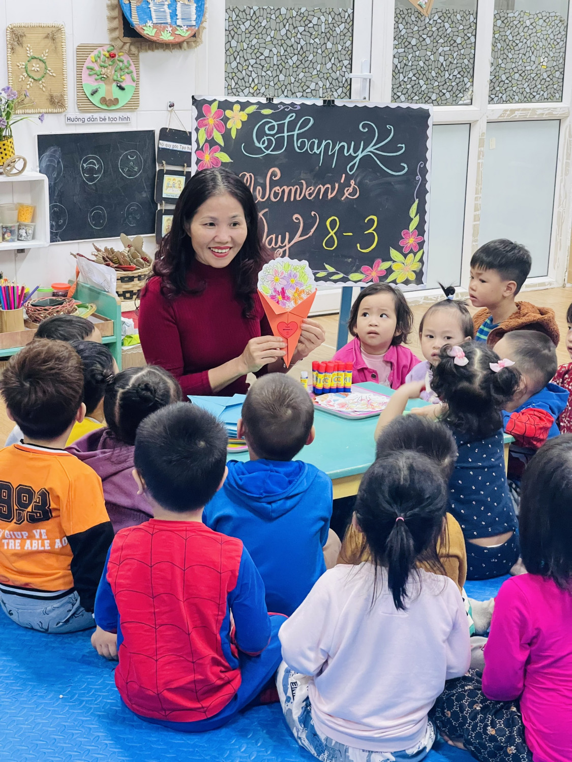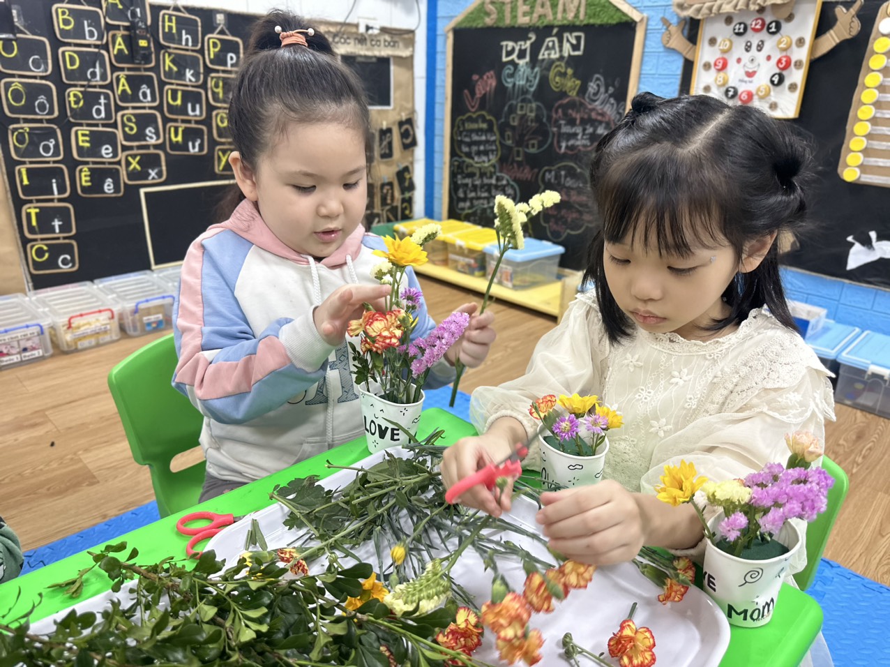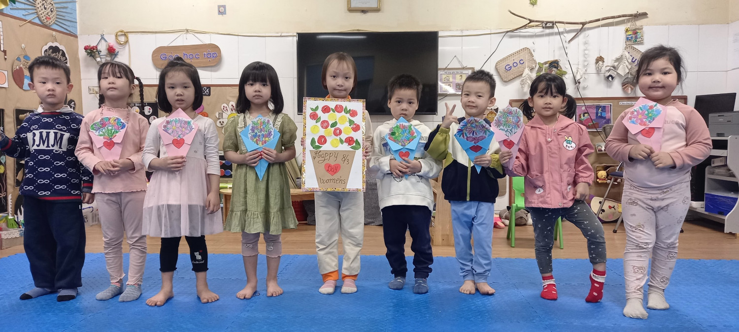 Các con rất hào hứng muốn tự tay mình làm nên những tấm thiệp xinh, cắm những lọ hoa thật đẹp để tặng bà và mẹ. Khi tham gia buổi trải nghiệm với những thao tác, kỹ năng đã có trẻ rất hào hứng tích cực để trang trí tấm thiệp đẹp nhất. Hoạt động không chỉ giúp trẻ thấy được ý nghĩa của ngày Quốc tế Phụ nữ 8/3 mà qua đó còn bồi dưỡng cảm xúc tình cảm xã hội cho trẻ giúp trẻ biết thể hiện sự quan tâm, yêu quý, kính trọng đối với các bà các mẹ.