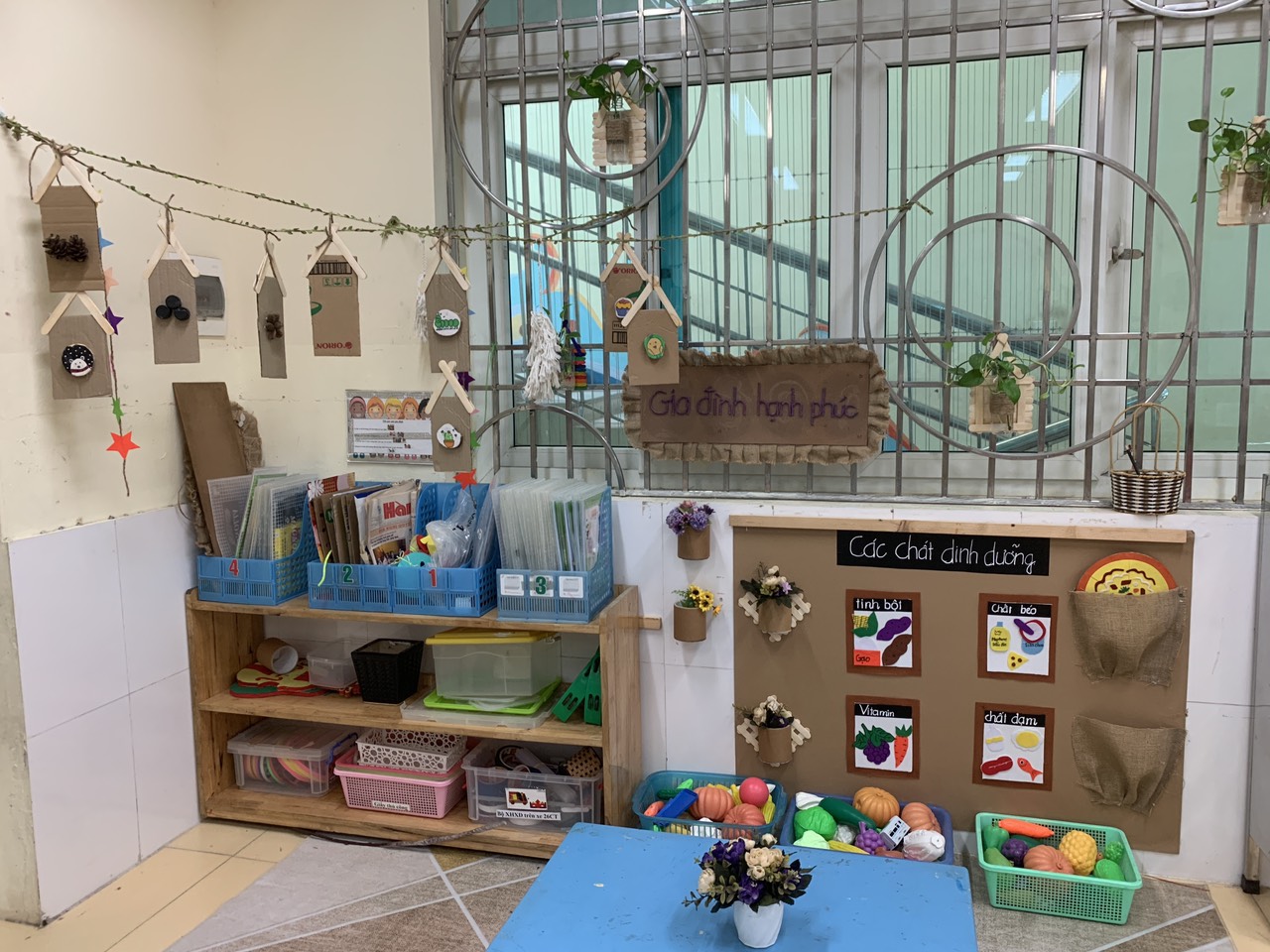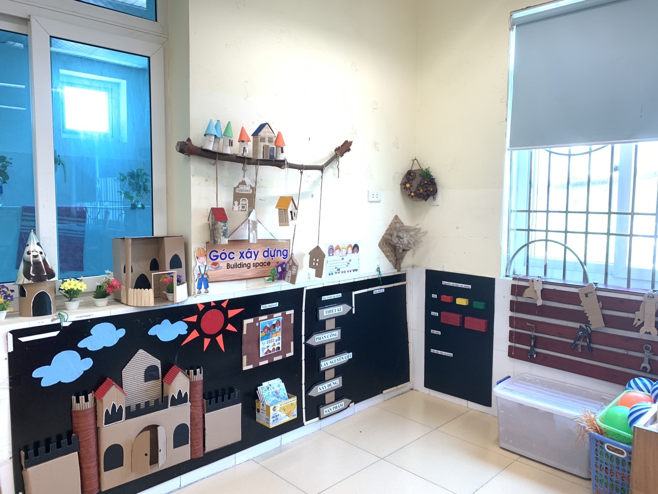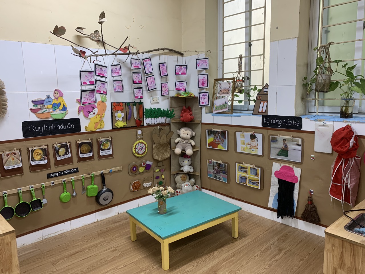 Để thiết kế được một môi trường nhóm, lớp hợp lý và hiệu quả các cô giáo trong nhà trường đã nắm vững nguyên tắc và xác định rất rõ mục đích của việc thiết kế: Các mảng tường trong từng góc chơi và các đồ dùng, đồ chơi cho trẻ trong mỗi góc phải có tính tương tác cao đối với trẻ, phải kích thích tính tò mò, sáng tạo của trẻ, gọi mời trẻ vào chơi.... khi nhìn vào các mảng tường, các đồ dùng, đồ chơi, nguyên vật liệu trong góc là trẻ muốn chơi ngay và biết cách chơi không cần sự hướng dẫn nhiều của cô giáo theo đúng phương châm "Chơi mà học - Học bằng chơi" mỗi ngày mà Ngành GD ĐT đã định hướng, chỉ đạo.