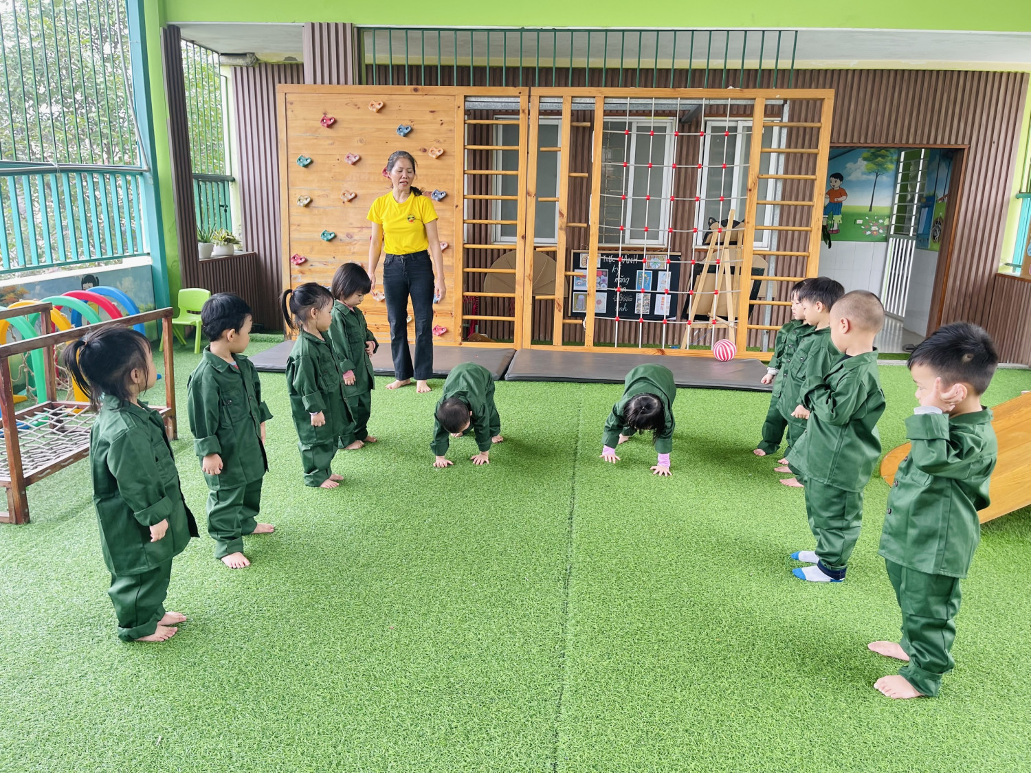 ☘️☘️☘️Hoạt động vận động "Bé thích làm chú bộ đội" là hoạt động thiết thực và ý nghĩa, đây là cơ hội cho trẻ được nhập vai với các bài tập vận động làm chú bộ đội… Thông qua đó đã giúp trẻ rèn luyện sức khoẻ, tính nhanh nhẹn, linh hoạt, tính kỷ luật, đoàn kết khi tham gia vui chơi và học tập cùng các bạn. Đồng thời, hoạt động này còn giáo dục trẻ lòng biết ơn, bày tỏ tình cảm yêu quý, kính trọng các chú bộ đội.