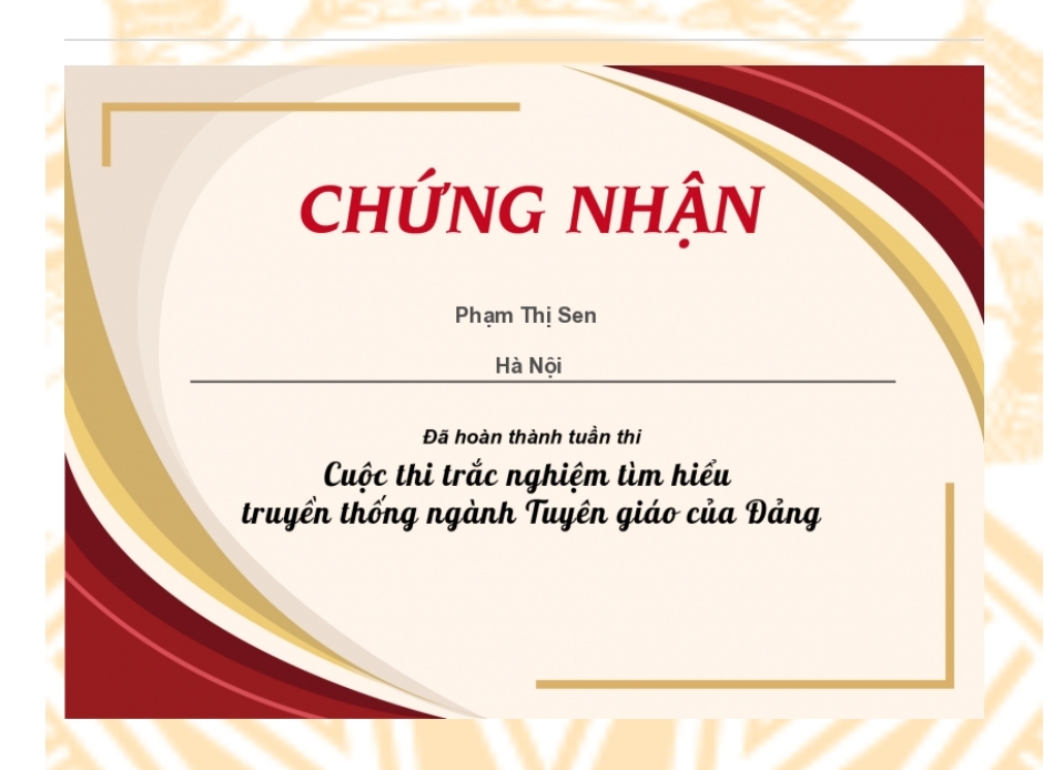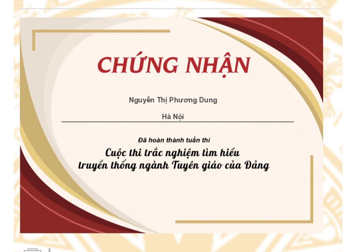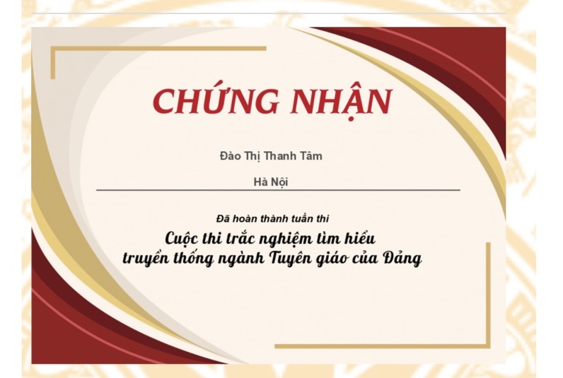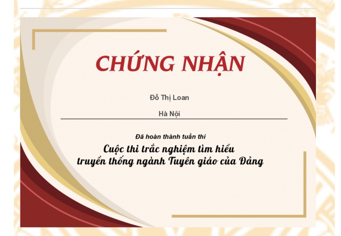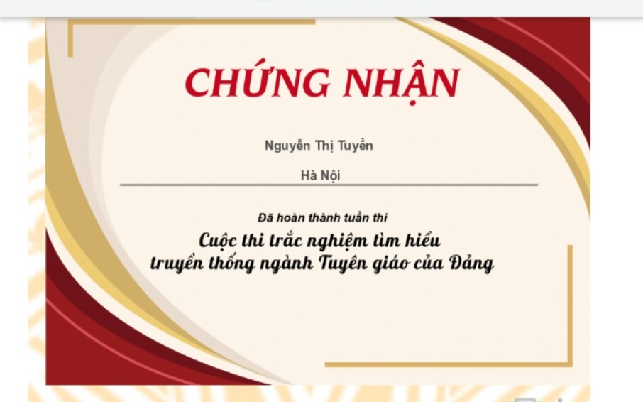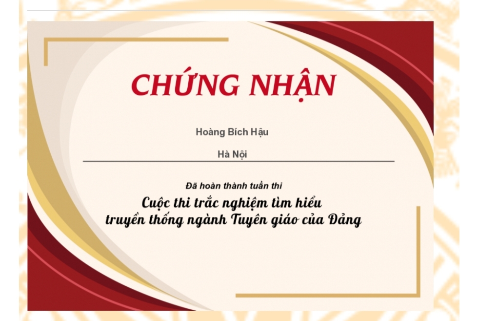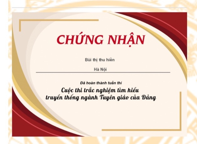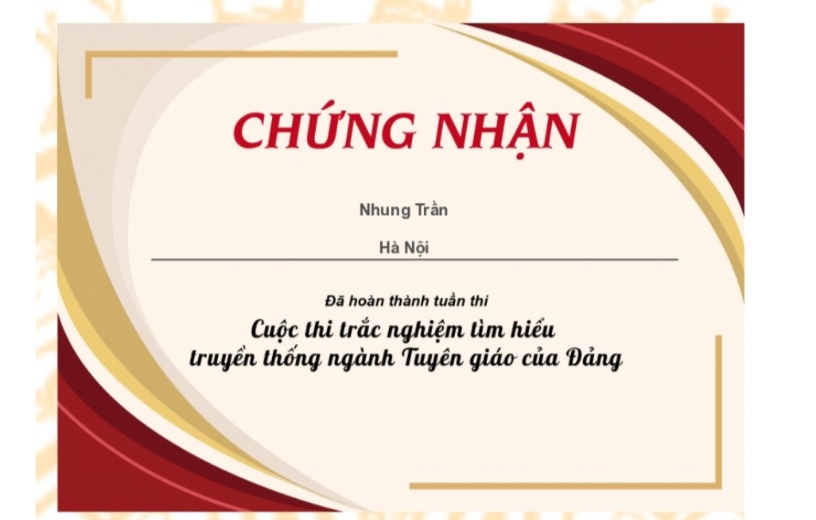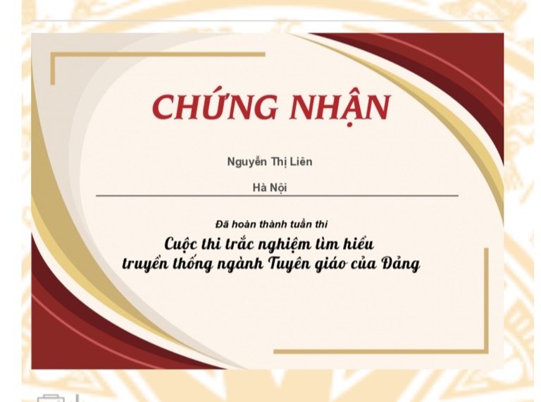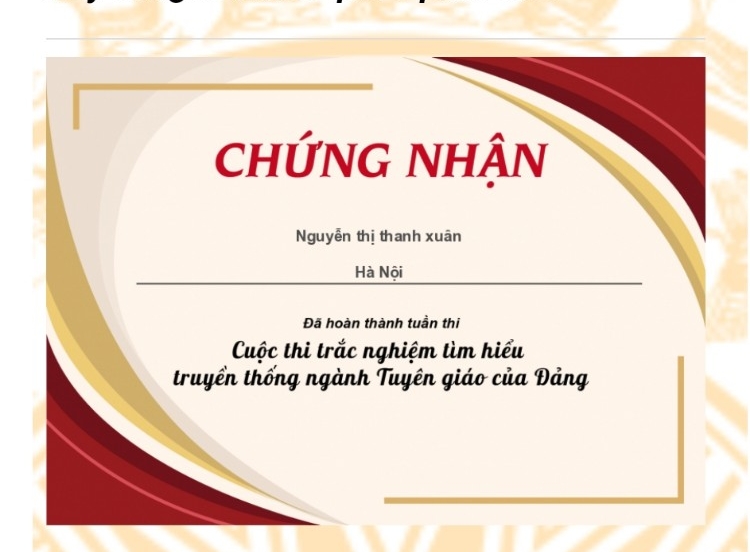 Nhân dịp kỷ niệm 93 năm Ngày truyền thống công tác Tuyên giáo của Đảng (01/8/1930 - 01/8/2023). Cán bộ, giáo viên, nhân viên Trường Mầm Non La Khê tích cực hưởng ứng tham gia Cuộc thi trắc nghiệm tìm hiểu truyền thống Ngành Tuyên giáo của Đảng. Tập thể CBGVNV nhà trường đã hưởng ứng tham gia cuộc thi và nhận được những tấm giấy chứng nhận đã hoàn thành tuần 3 của cuộc thi.