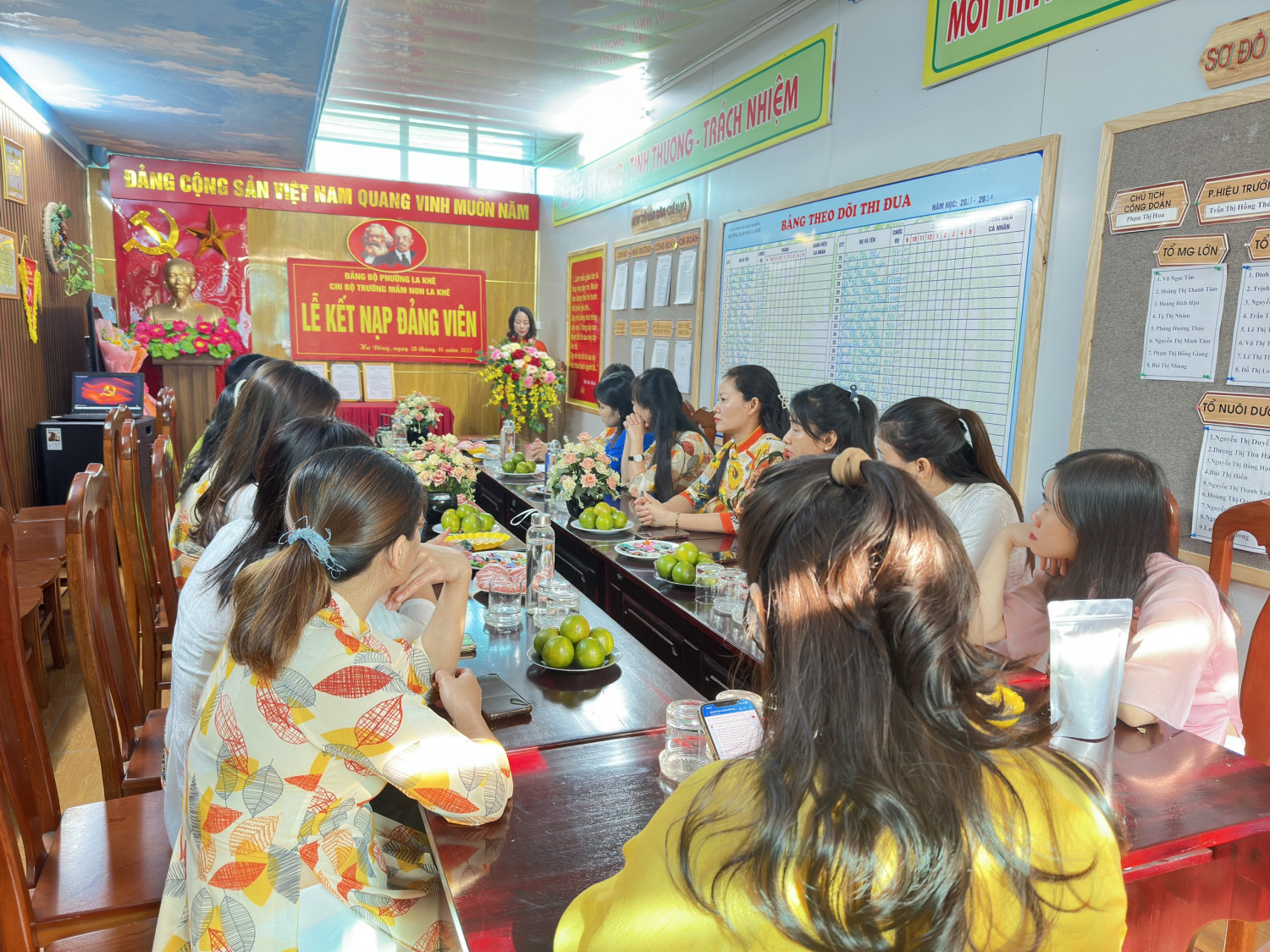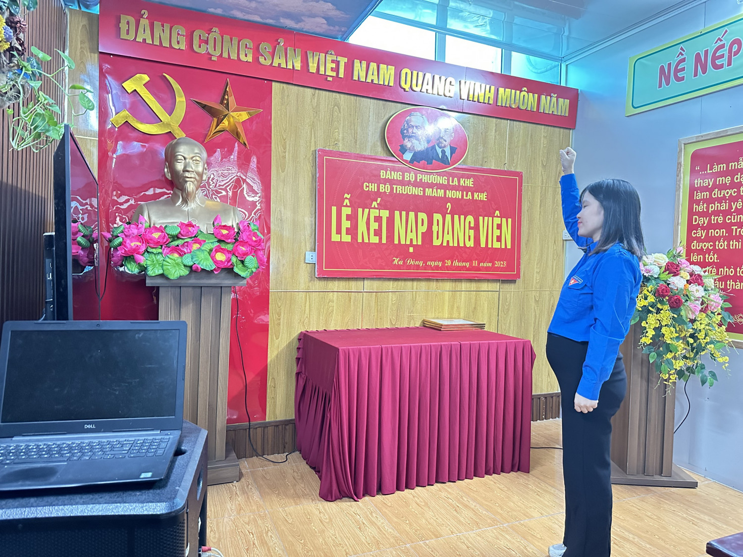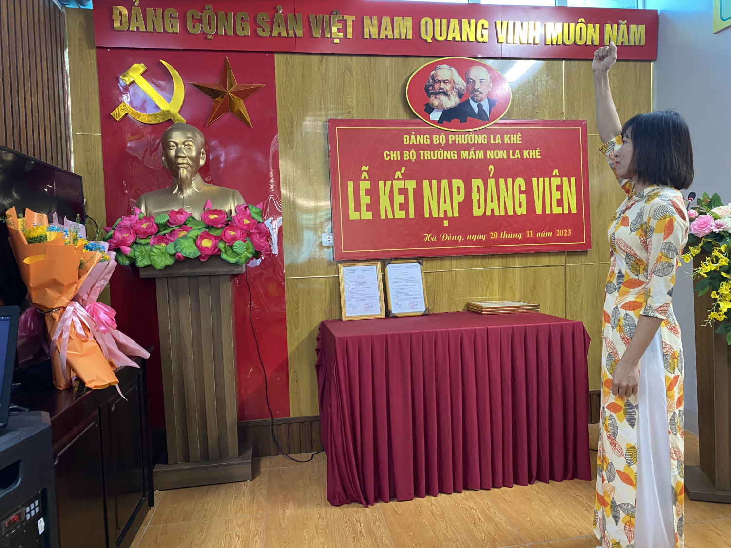 Được sự nhất trí của Đảng ủy Phường La Khê, sáng ngày 20/11/2023 Chi bộ trường MN La Khê long trọng tổ chức lễ kết nạp Đảng viên cho các quần chúng Vũ Thị Thường, Hứa Thu Hà và Nguyễn ThịPhương Dung.