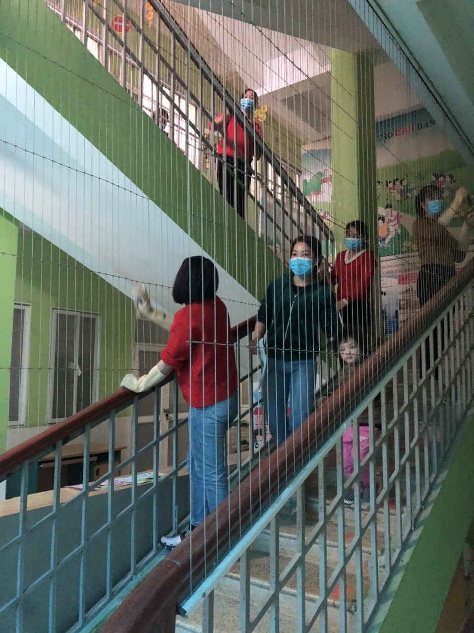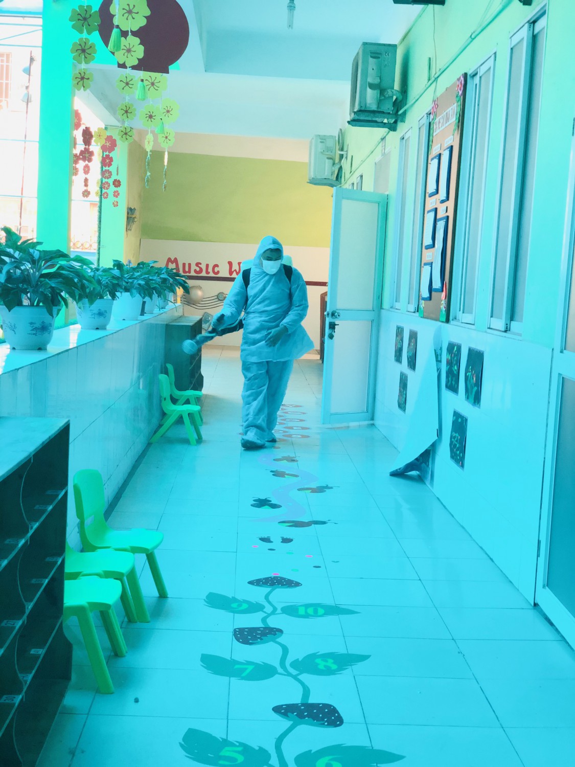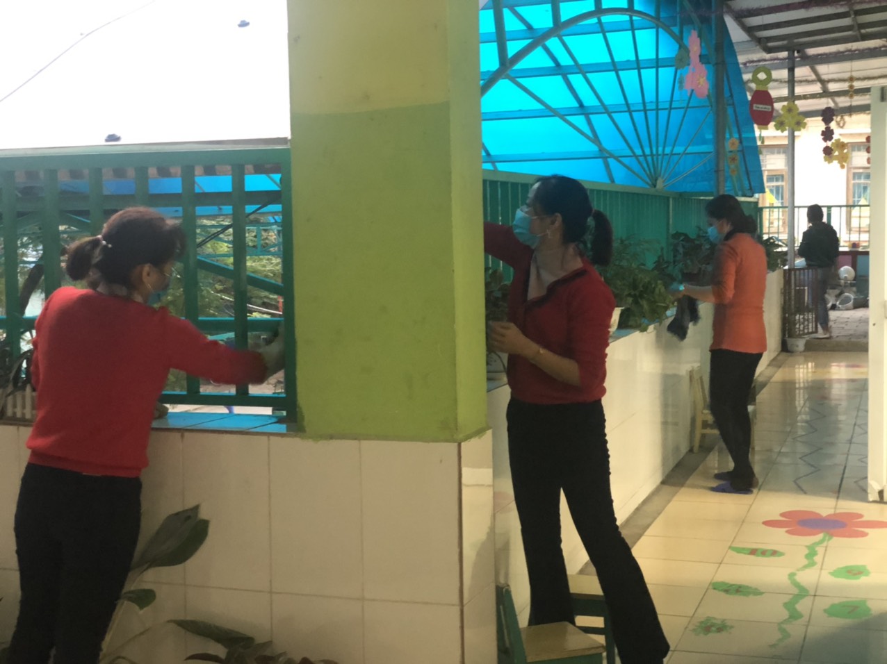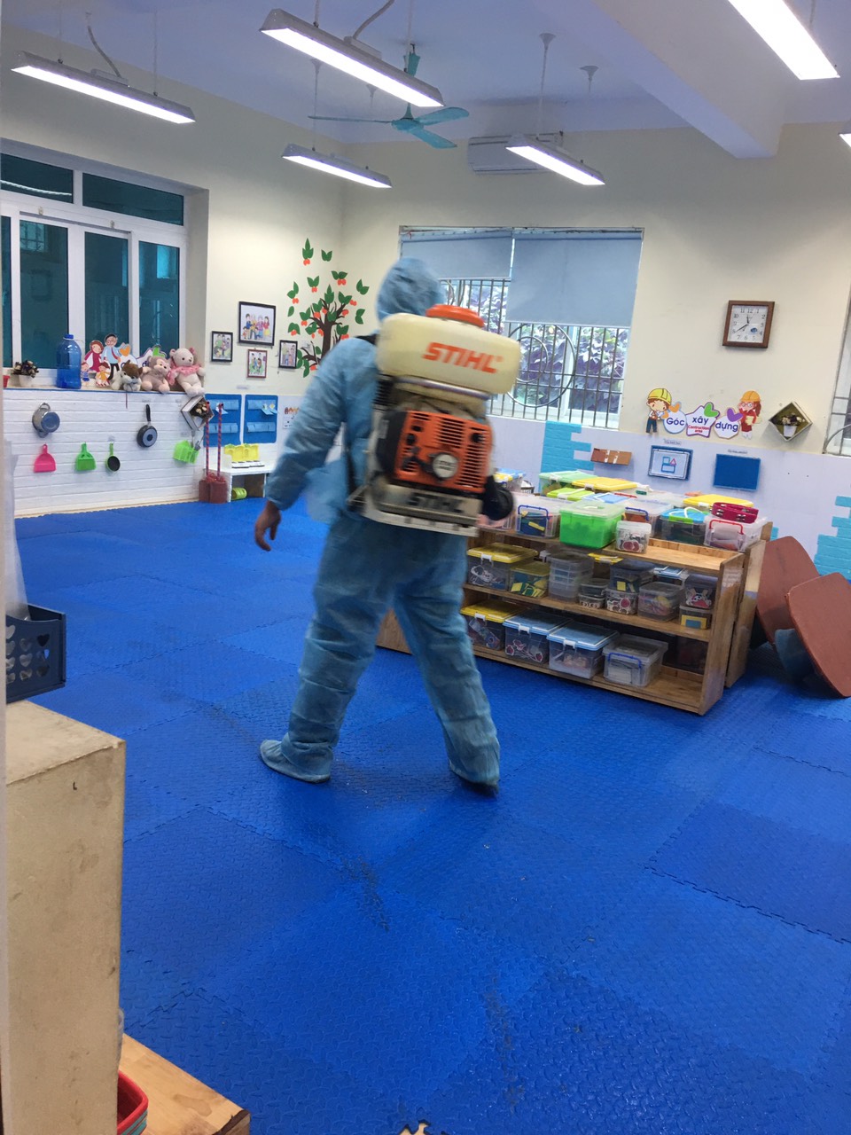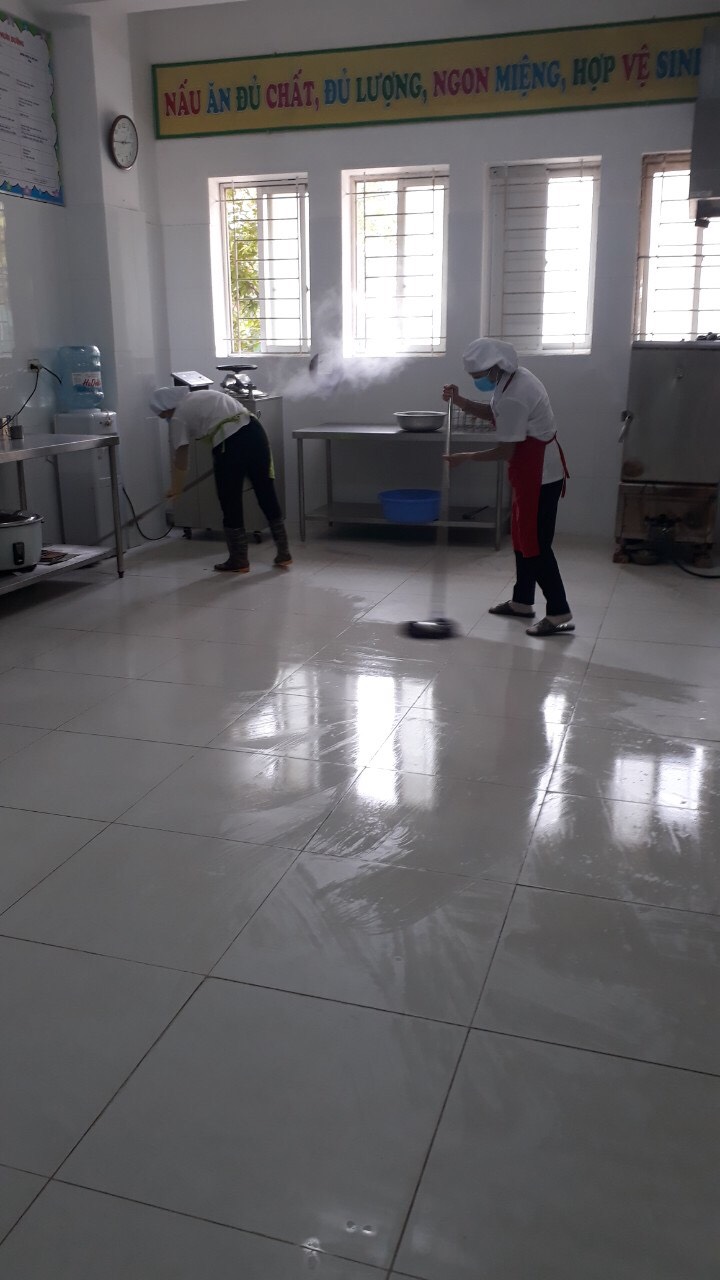 Giáo viên đang vệ sinh các nhóm lớp