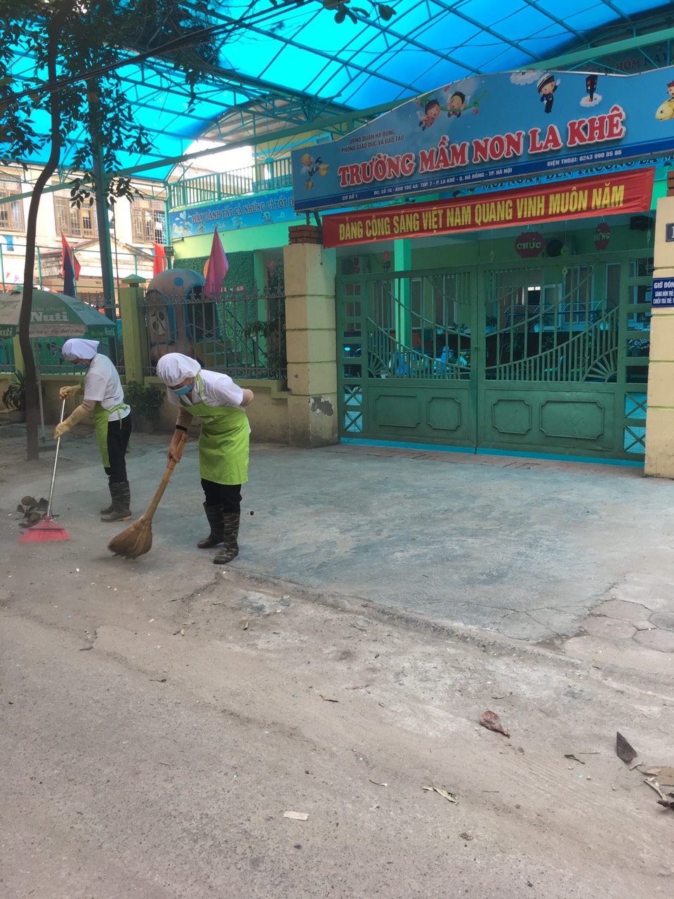 Được sự quan tâm chỉ đạo- hướng dẫn sát sao của phòng GD&ĐT quận Hà Đông, trạm y tế phường La Khê trong công tác phòng dịch nhiễm khuẩn đường hô hấp do chủng mới của vi rút corona tấn công. Trạm y tế phường La Khê đã cử cán bộ chuyên trách đến phun khử khuẩn toàn bộ khu vực trong và ngoài lớp học. Song song với các biện pháp vệ sinh đồ dùng đồ chơi, các biện pháp vệ sinh cá nhân, đeo khẩu trang ....