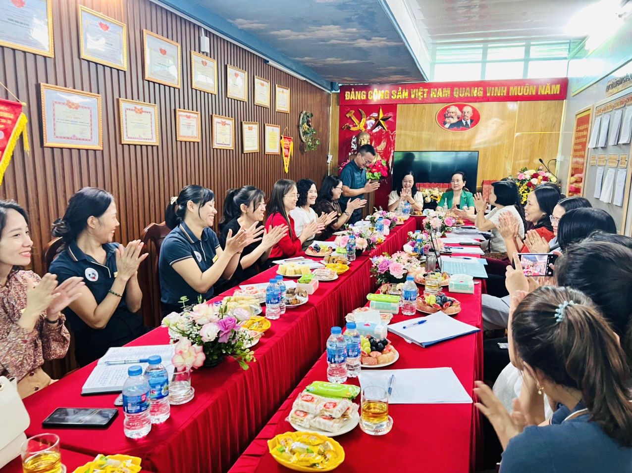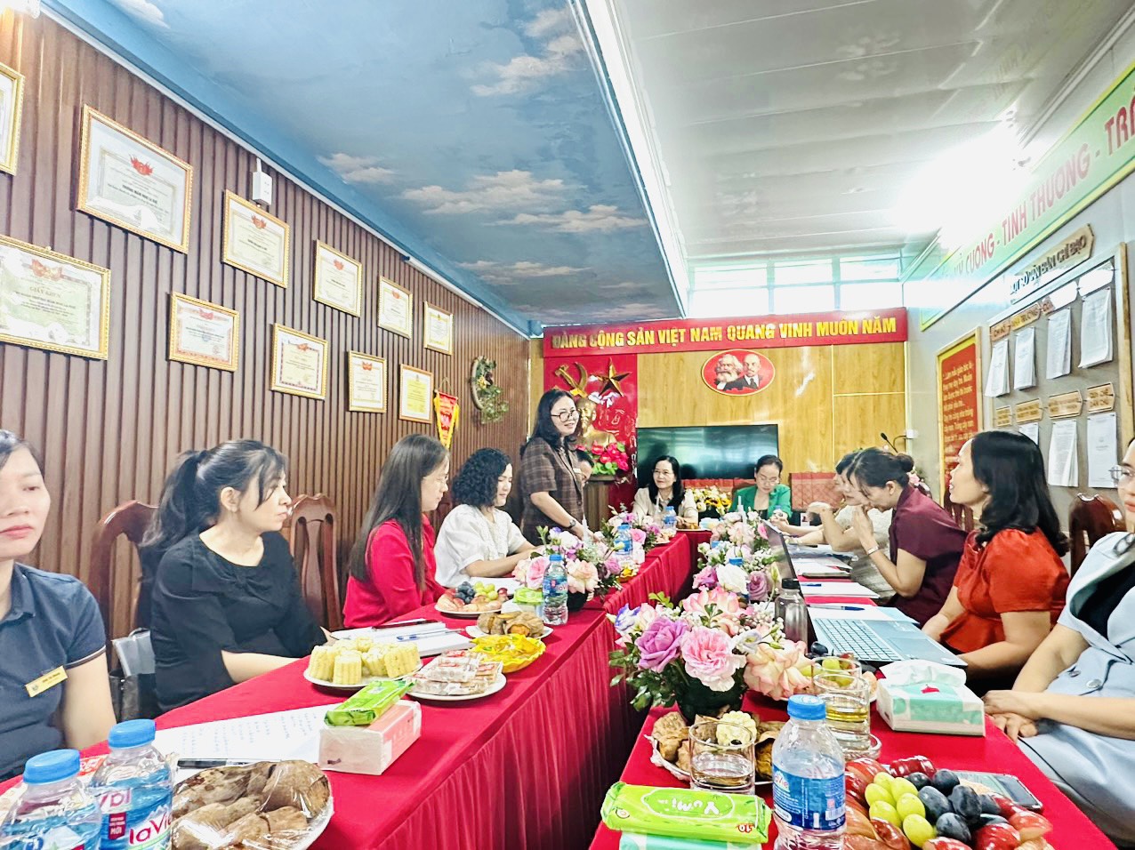 Sau buổi làm việc Bà Nguyễn Thị Hào - Trưởng đoàn đánh giá kết luận ghi nhận những nỗ lực của tập thể cán bộ, giáo viên, nhân viên nhà trường đã tích cực làm tốt công tác tham mưu cho cấp ủy, chính quyền địa phương trong việc xây dựng trường chuẩn theo đúng lộ trình, phấn đấu xây dựng trường học có chất lượng giáo dục ngày càng cao, tạo niềm tin đối với cha mẹ học sinh. Đề nghị nhà trường tiếp tục phát huy những điểm mạnh, những hiệu quả đã đạt được về chất lượng chăm sóc, giáo dục trẻ đồng thời cần khắc phục những hạn chế mà đoàn đã chỉ ra, để kiện toàn, nâng cao chất lượng các tiêu chí, tiêu chuẩn kiểm định chất lượng giáo dục và hoàn thiện hồ sơ báo cáo.
