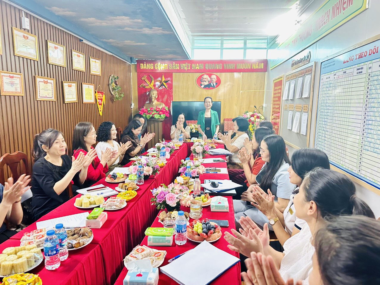 Bà Phạm Thị Lệ Hằng - Quận ủy viên, Trưởng phòng giáo dục cùng các chuyên viên phòng giáo dục.