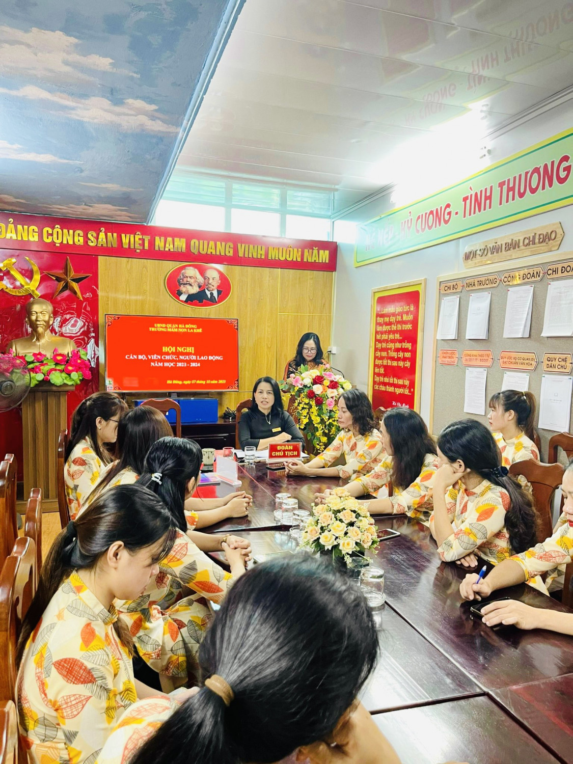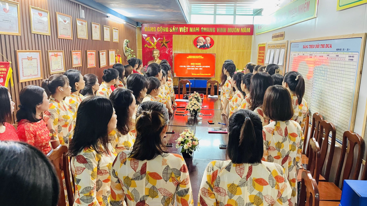 Hội nghị diễn ra trong bầu không khí trang nghiêm, trách nhiệm và dân chủ. Ngay sau nghi lễ chào cờ, tuyên bố lý do, giới thiệu đại biểu. Hội nghị đã bầu ra đoàn chủ tịch điều hành hội nghị gồm các đồng chí Trịnh Thị Nguyệt - Bí thư chi bộ - Hiệu trưởng; Đồng chí Phạm Thị Hoa - Chủ tịch Công đoàn - Phó hiệu trưởng. Đoàn chủ tịch giới thiệu thư ký hội nghị là đồng chí Đào Thị Thanh Tâm - Văn thư.