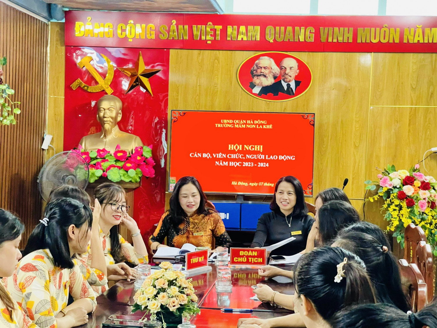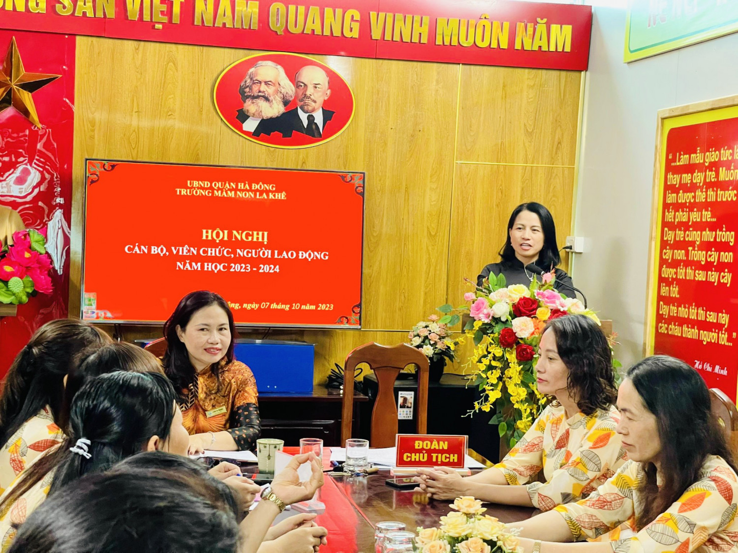 Kết thúc Hội nghị, 100% cán bộ giáo viên nhân viên nhà trường nhất trí với nội dung nghị quyết và cam kết thực hiện tốt nhiệm vụ năm học. Hội nghị thành công tốt đẹp trong niềm hân hoan, phấn khởi và tràn đầy khí thế bước vào năm học mới 2023 - 2024 của tập thể CBGVNV trường mầm non La Khê.