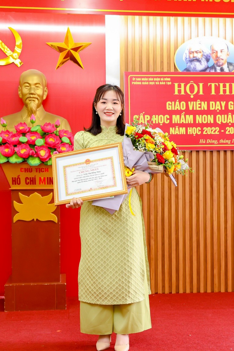 Cô giáo Trần Thị Hồng Nhung vinh dự đại diện cho trường mầm non La Khê tham gia hội thi "Giáo viên dạy giỏi cấp học mầm non quận Hà Đông" với mục đích giao lưu, học hỏi kinh nghiệm trong giảng dạy, khai thác sử dụng sáng tạo các biện pháp, hình thức dạy học theo quan điểm “lấy trẻ làm trung tâm”, “học mà chơi, chơi mà học” giúp trẻ tích cực, hứng thú tham gia hoạt động.