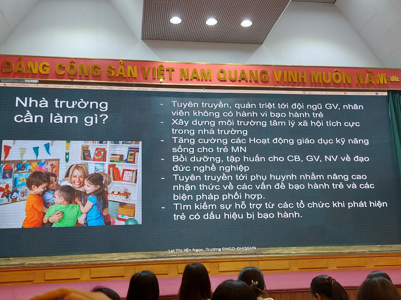 Bài giảng cũng đã cho chúng ta thấy vai trò, trách nhiệm của xã hội, Nhà trường, thầy cô giáo và các bậc làm cha làm mẹ trong việc ngăn ngừa bạo hành trẻ. Để phòng ngừa và ngăn chặn tình trạng bạo hành trẻ em mỗi tổ chức, cá nhân phải thể hiện bằng hành động để loại bỏ mọi nguy cơ dẫn đến bạo hành trẻ, các cô giáo mầm non cần giúp trẻ có kỹ năng nhận diện và ứng phó với bạo hành qua các hoạt động giáo dục kỹ năng sống cho trẻ.