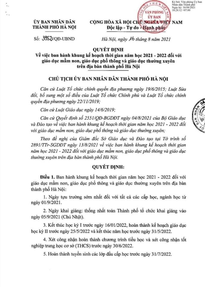 Kính gửi các bậc phụ huynh trường MN La Khê khung thời gian kế hoạch năm học 2021-2022 theo quyết định số 3952/QĐ-UBND ngày 16/8/2021 của UBND thành phố Hà Nội ban hành. Ngày 1/9/2021 là ngày tựu trường, hy vọng dịch bệnh sớm được kiểm soát để cô trò cùng hân hoan chào đón năm học mới!
