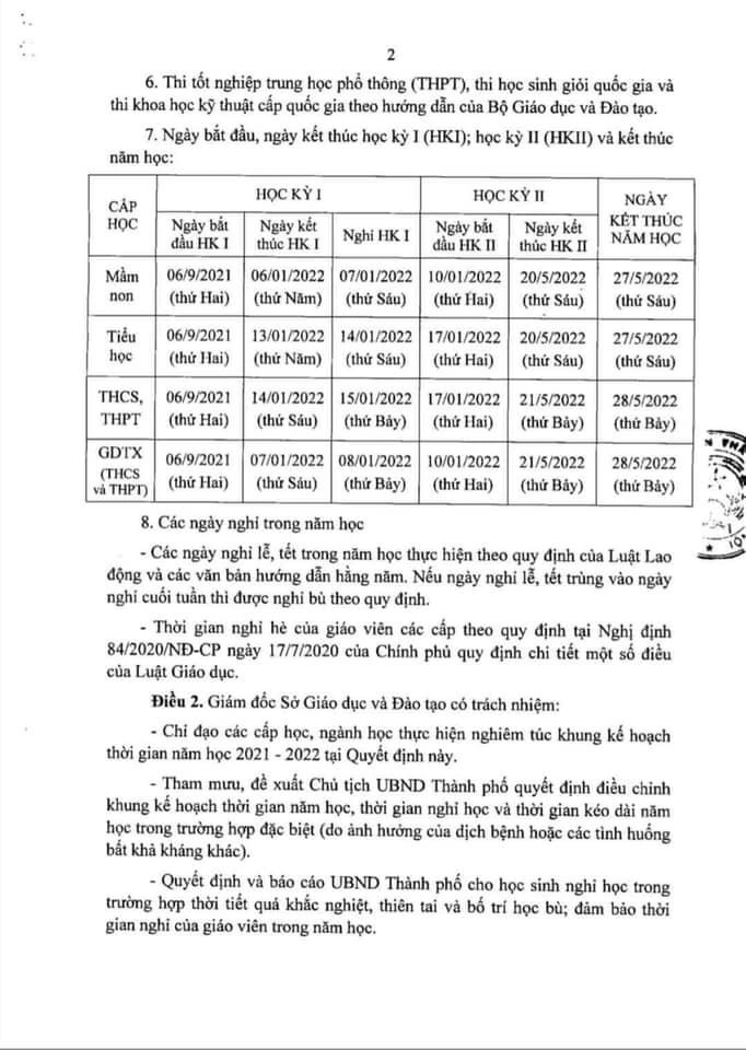 THÔNG BÁO KHUNG KẾ HOẠCH NĂM HỌC 2021-2022!