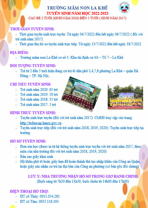 Trường mầm non La Khê xin thông báo tuyển sinh năm học 2022-2023!