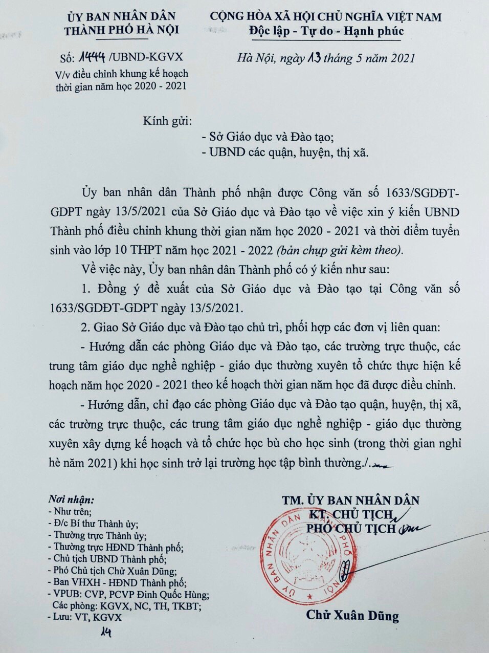 Do tình hình dịch bệnh Covid-19 diễn biến phức tạp, Sở GDĐT điều chỉnh kế hoạch thời gian năm học 2020-2021 như sau: Các cấp học Mầm non, Tiểu học, THCS, THPT, GDTX nghỉ hè sớm, bắt đầu nghỉ hè từ ngày 15/5/2021 (sớm hơn 14 ngày so với khung kế hoạch thời gian năm học 2020-2021). Nhiệm vụ năm học còn lại của nă học sẽ thực hiện vào thời gian nghỉ hè và khi tình hình dịch bệnh ổn định, học sinh có thể quay lại trường học tập.