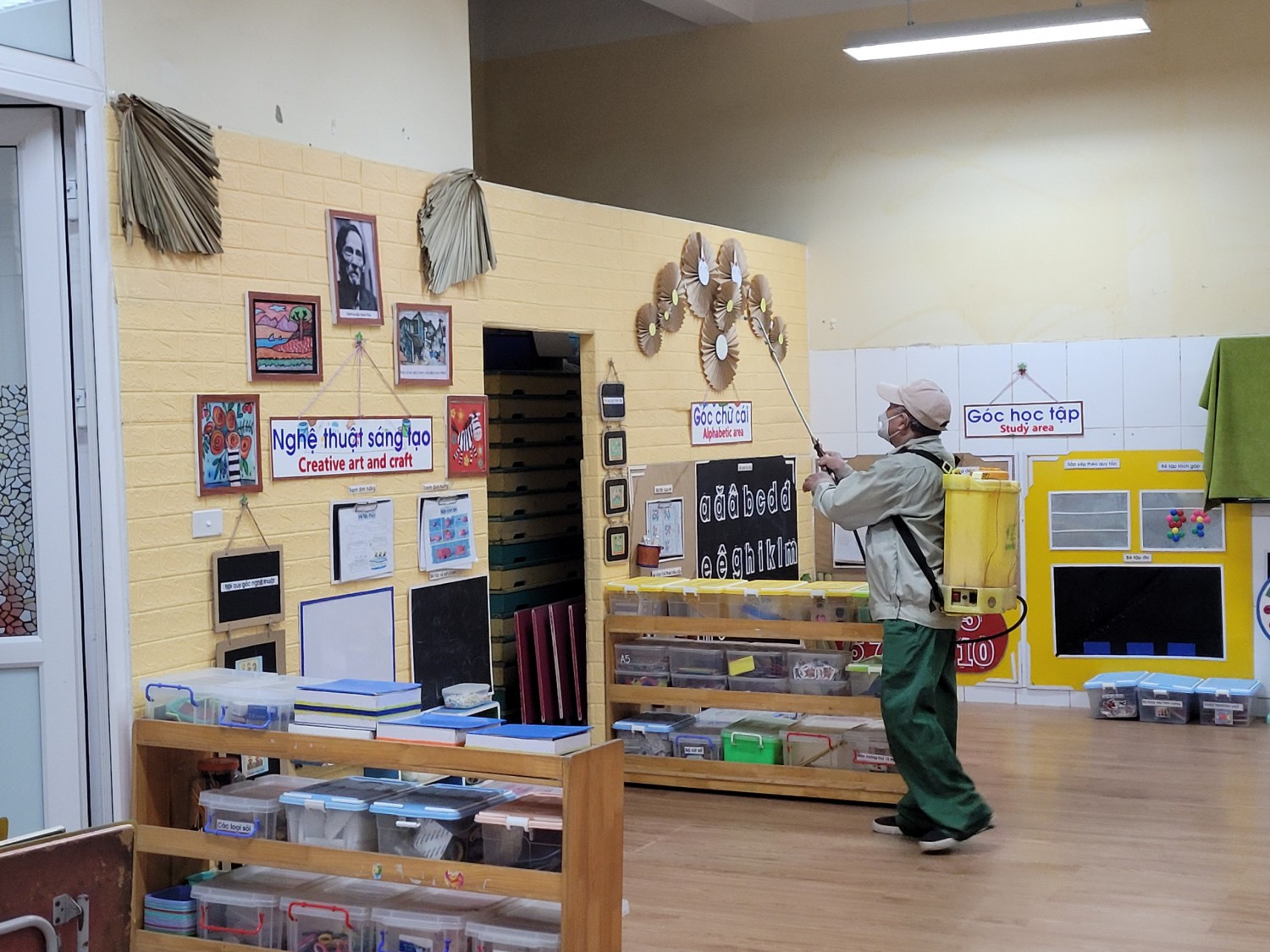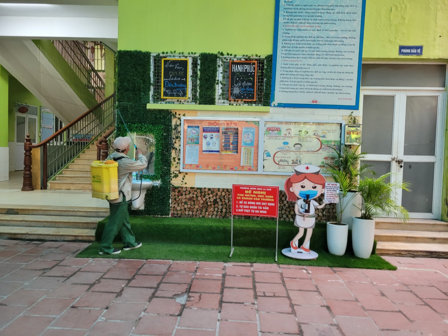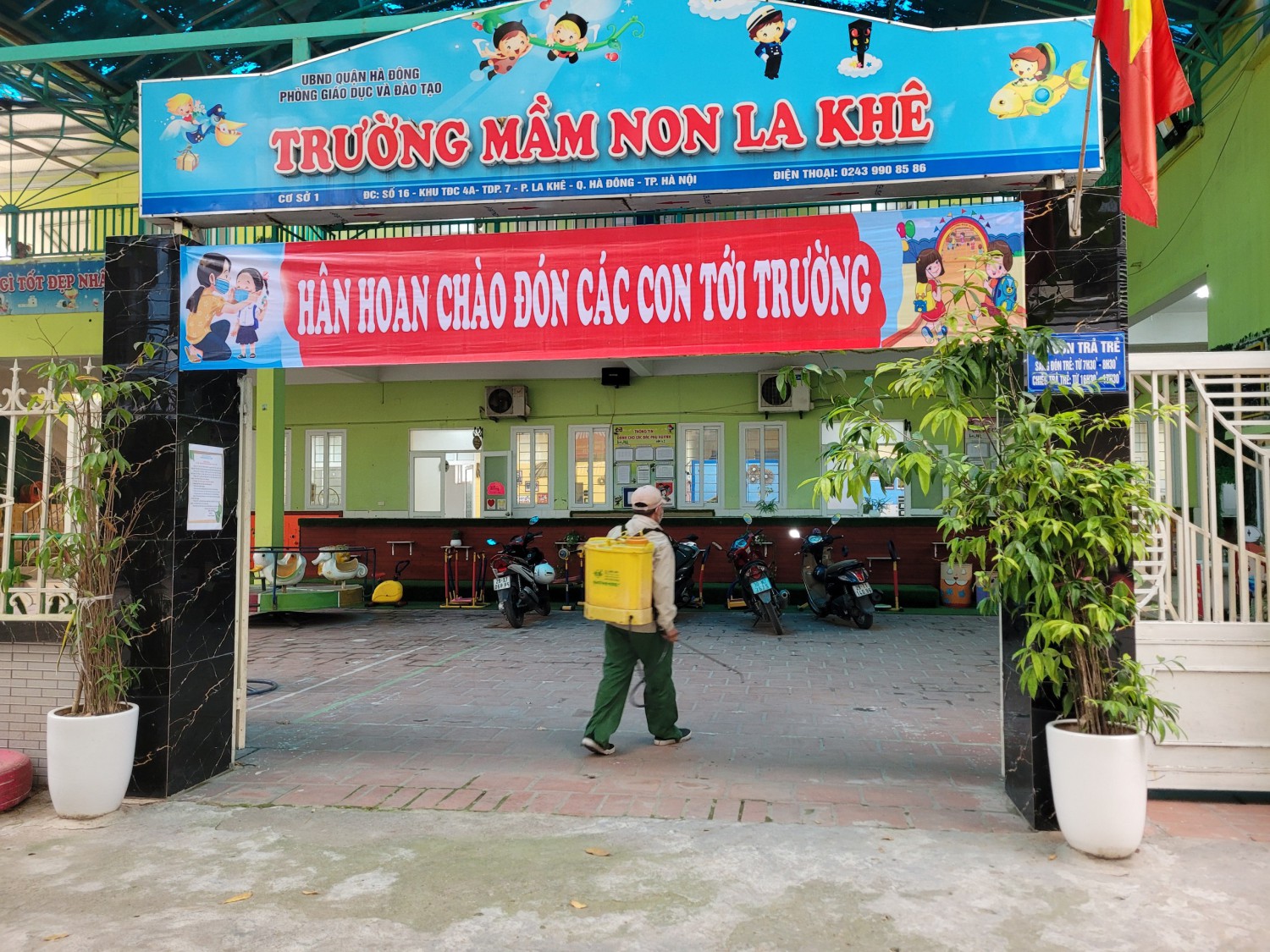 Để chào đón các bé yêu trở lại trường học, CBGVNV của Trường mầm non La Khê đã phối hợp với Hội CMHS thực hiện những công tác tốt nhất để đảm bảo môi trường và các hoạt động hấp dẫn cho các con yên tâm học tập và phát triển. ► Khử khuẩn toàn bộ trường học, khu vực hành lang, lớp học, phòng chức năng. ► Vệ sinh sạch sẽ các đồ dùng, học cụ, đồ chơi của trẻ. ► Xây dựng phương án, tập huấn cho cán bộ, giáo viên, nhân viên về công tác phòng chống dịch bệnh. ► Xây dựng kế hoạch chăm sóc, giáo dục trẻ an toàn trong mùa dịch.