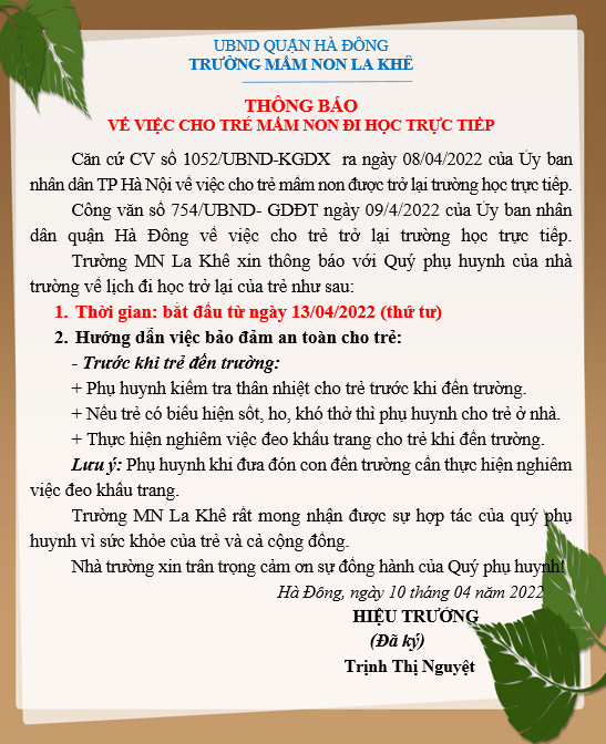 Hẹn gặp lại các bé yêu và Quý phụ huynh của Trường mầm non La Khê vào ngày 13/04/2022