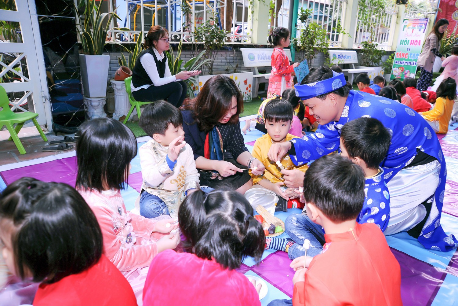 Trong chương trình "Xuân yêu thương"các bé được biểu diễn những tiết mục văn nghệ đặc sắc chào mừng xuân 2021. Ngoài ra các bé còn được tham gia những trò chơi thú vị và tự tay tạo ra những sản phẩm đẹp và ý nghĩa như nặn tò he con trâu, quả đào, củ cà rốt, chấm màu hoa đào, hoa mai.