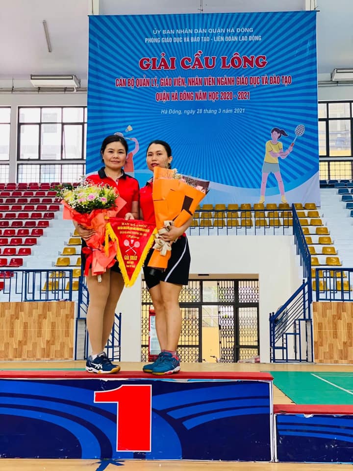 Đồng chí Bạch Ngọc Lợi - Phó trưởng phòng GD&ĐT quận Hà Đông trao giải cho các đôi nữ đạt giải