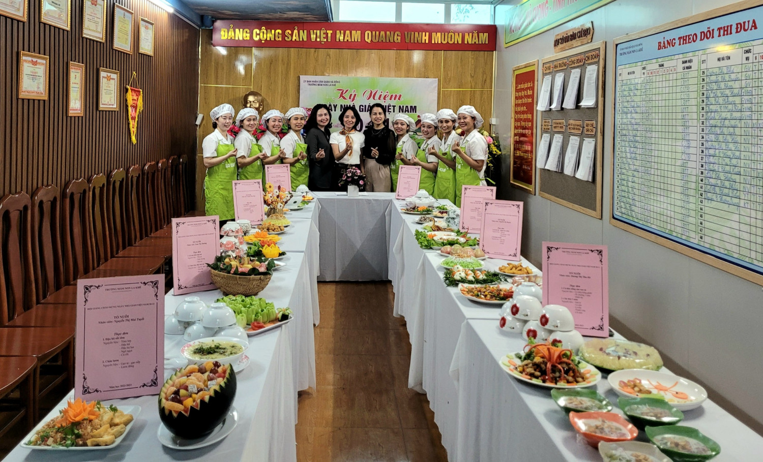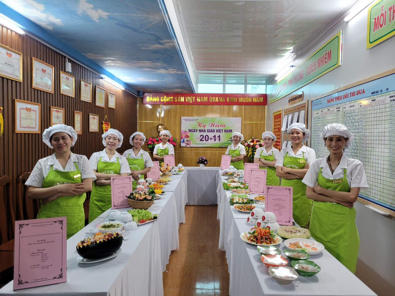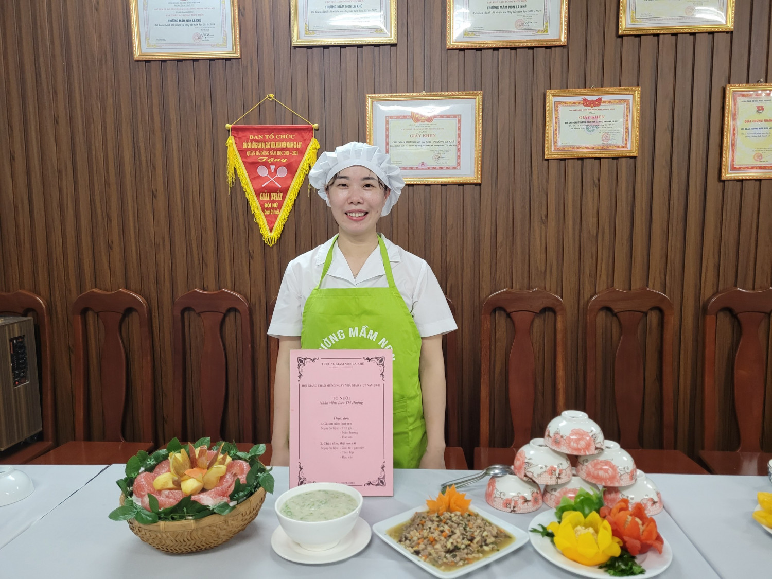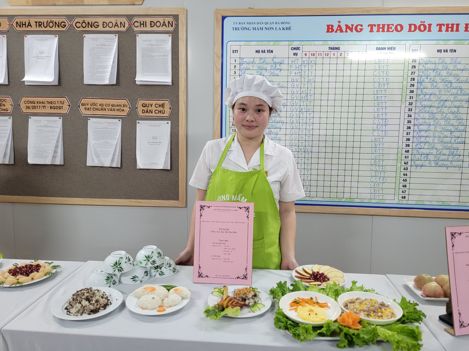 Hội thi "Nhân viên nuôi dưỡng giỏi" cấp trường năm học 2022-2023 với sự tham gia của các đồng chí nhân viên nuôi dưỡng đang làm việc tại bếp ăn của trường. Các đồng chí nhân viên dự thi đã thể hiện kỹ thuật cùng với sự sáng tạo qua việc chế biến những món ăn cho trẻ. Các món ăn đảm bảo cân đối các chất, đa dạng về thực phẩm và đảm bảo nhu cầu năng lượng hằng ngày cho trẻ; Đổi mới, sáng tạo trong cách trình bày tạo sự lôi cuốn, hấp dẫn cũng như sự phối hợp dây chuyền nhịp nhàng để hoàn thành tốt công việc được giao. Cùng những kinh nghiệm tích lũy, thao tác thành thạo khi sử dụng những trang thiết bị phục vụ công tác chế biến món ăn cho trẻ hàng ngày. Với sự cố gắng, tâm huyết của đội ngũ nhân viên nuôi dưỡng đã giúp Hội thi " Nhân viên nuôi dưỡng giỏi" cấp trường năm học 2022-2023 thành công tốt đẹp.