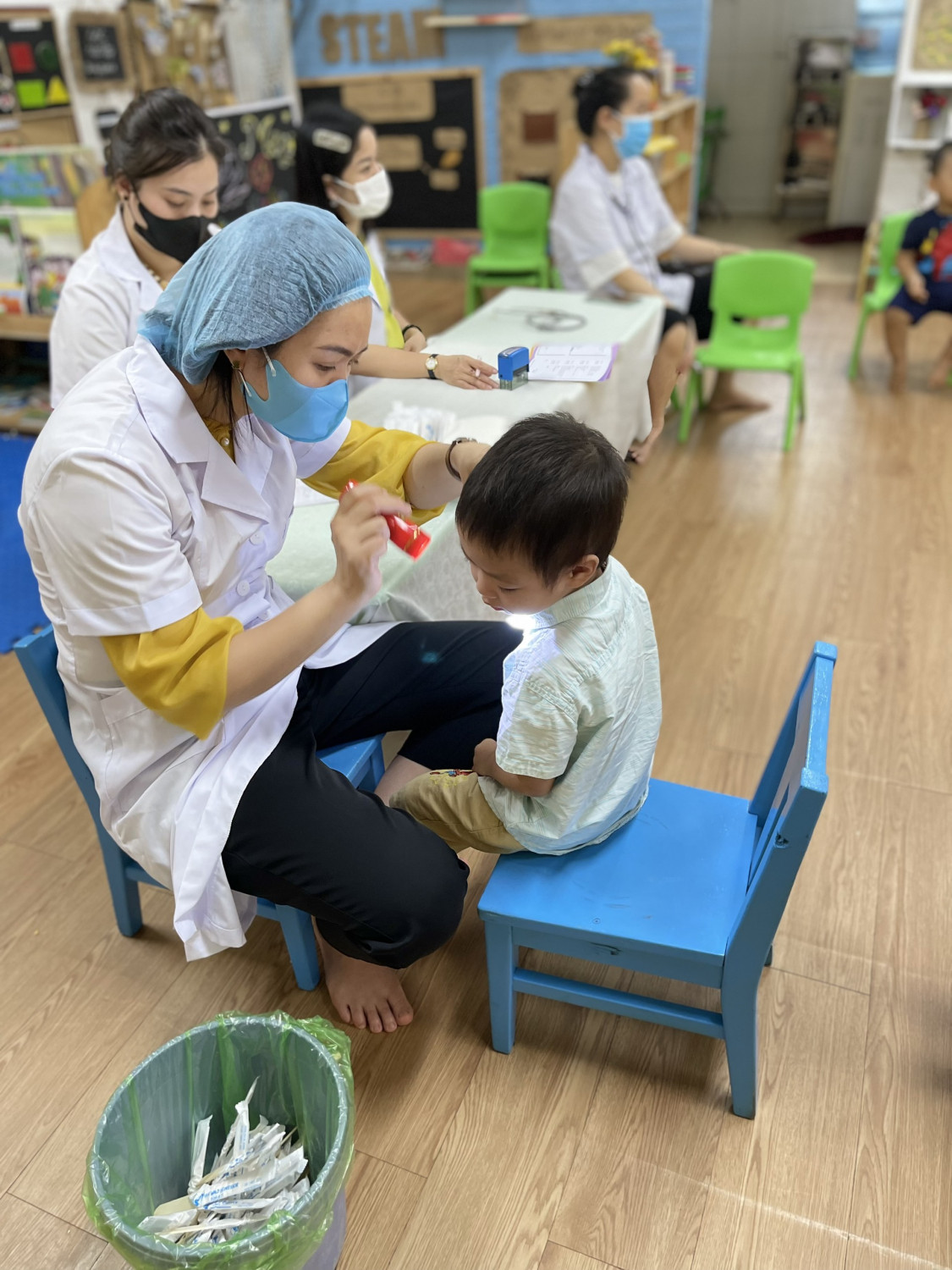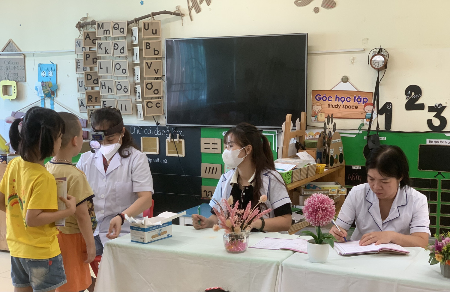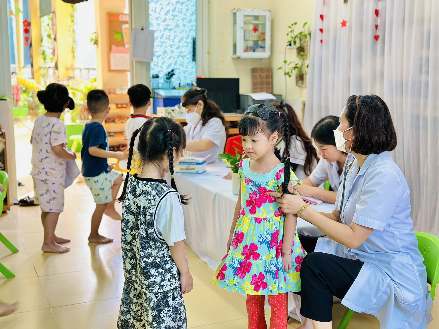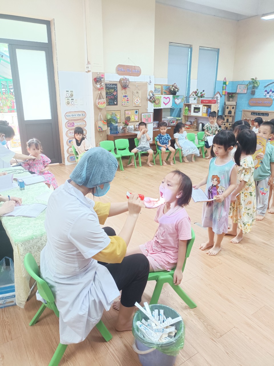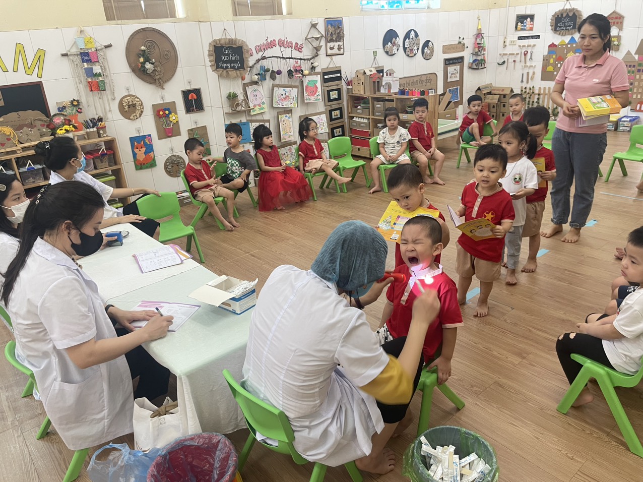 Dưới đây là một số hình ảnh trong buổi khám sức khỏe cho các bé: