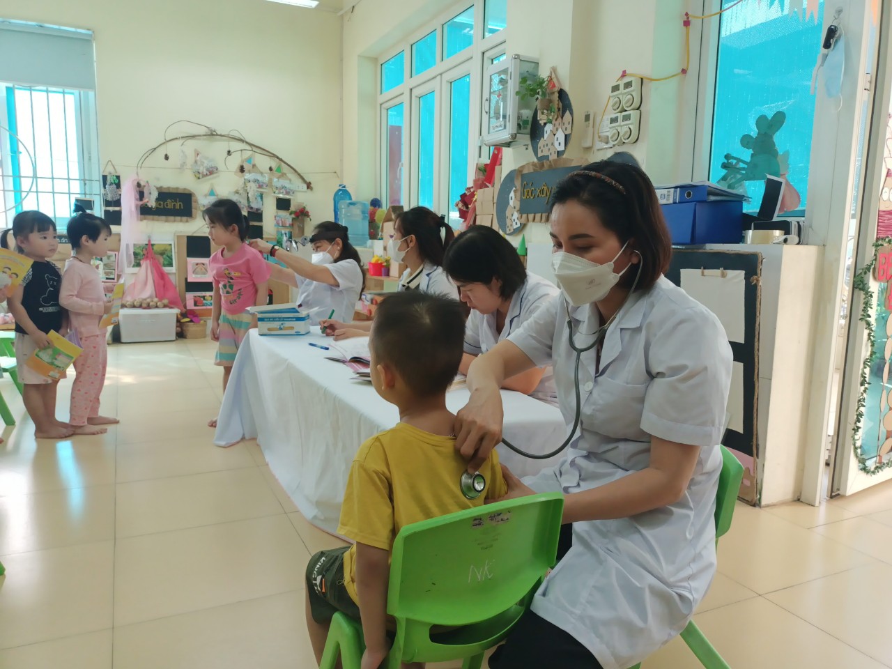 Ngày 02/11/2023, trường MN La Khê đã mời các bác sĩ Trung tâm y tế Quận và y tế phương La Khê đến khám sức khỏe định kỳ cho học sinh trong toàn trường.