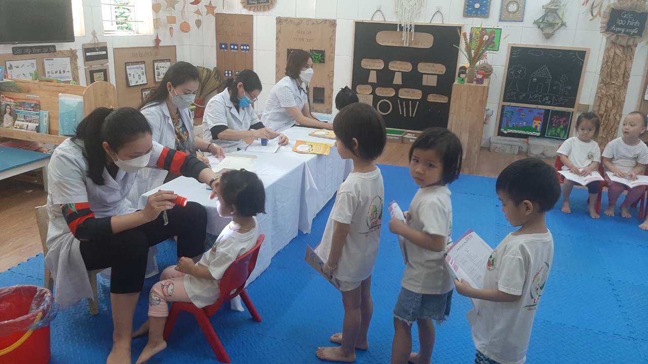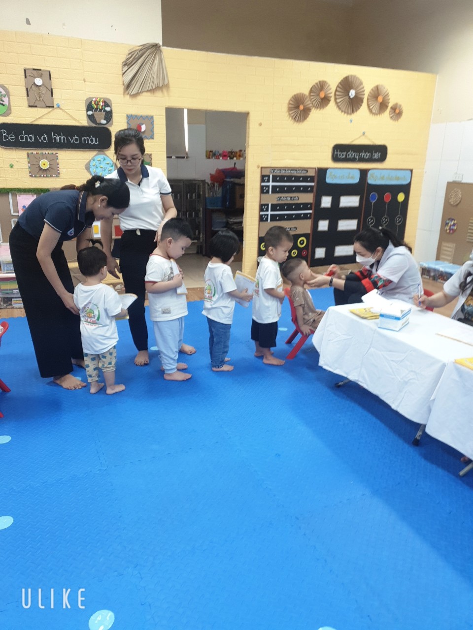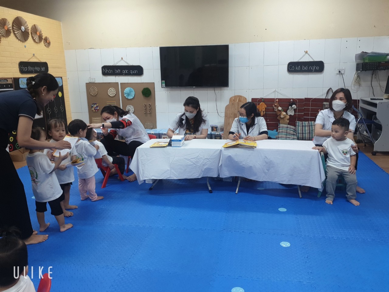 Thực hiện kế hoạch chăm sóc, nuôi dưỡng trẻ năm học 2022 - 2023, ngày 27/10/2022, trường Mầm non La Khê phối hợp với Trung tâm y tế quận Hà Đông, Trạm y tế phường La Khê tổ chức khám sức khỏe cho trẻ.