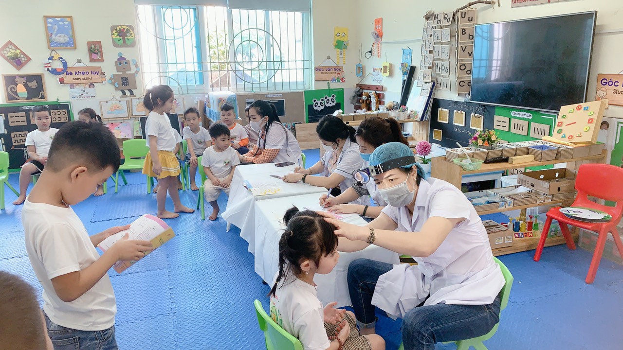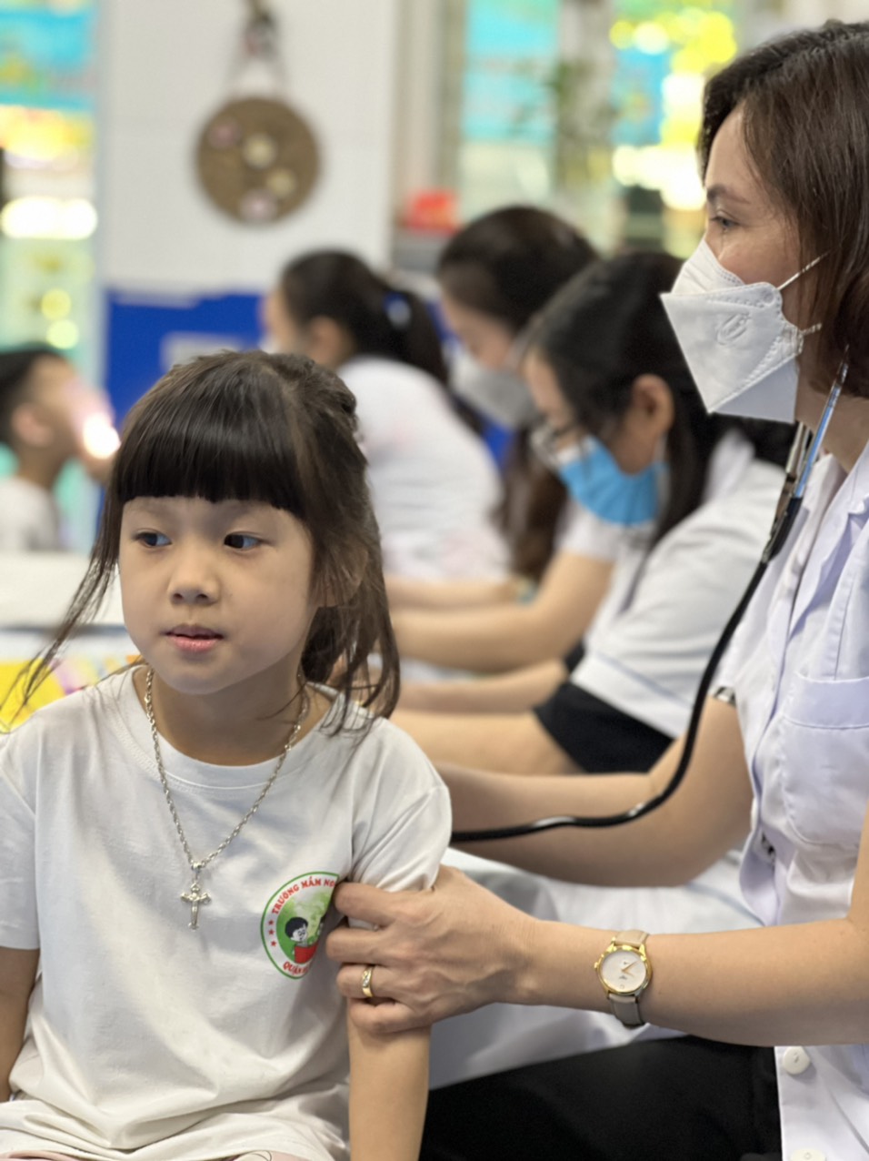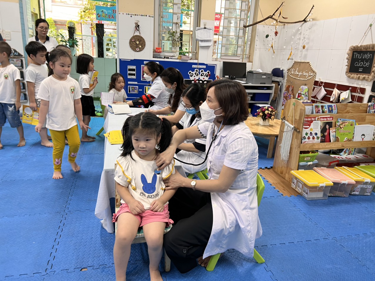 Với phương châm “Trẻ khỏe mạnh - giáo viên hạnh phúc”, việc khám sức khỏe định kỳ cho trẻ được xem như một biện pháp tích cực, trẻ được đánh giá tổng quát về thể lực cũng như sự tăng trưởng của cơ thể như: Cân nặng, chiều cao, thị lực, thính giác, răng hàm mặt, tai mũi họng, khả năng vận động và hô hấp…Thông qua việc khám sức khỏe định kỳ cho trẻ đã góp phần không nhỏ vào việc nâng cao chất lượng chăm sóc, nuôi dưỡng trong nhà trường, nâng cao nhận thức của phụ huynh trong việc phòng, chống một số bệnh thường gặp ở lứa tuổi mầm non, đem lại sự tin yêu, phấn khởi của phụ huynh về môi trường giáo dục an toàn - thân thiện và hạnh phúc.
