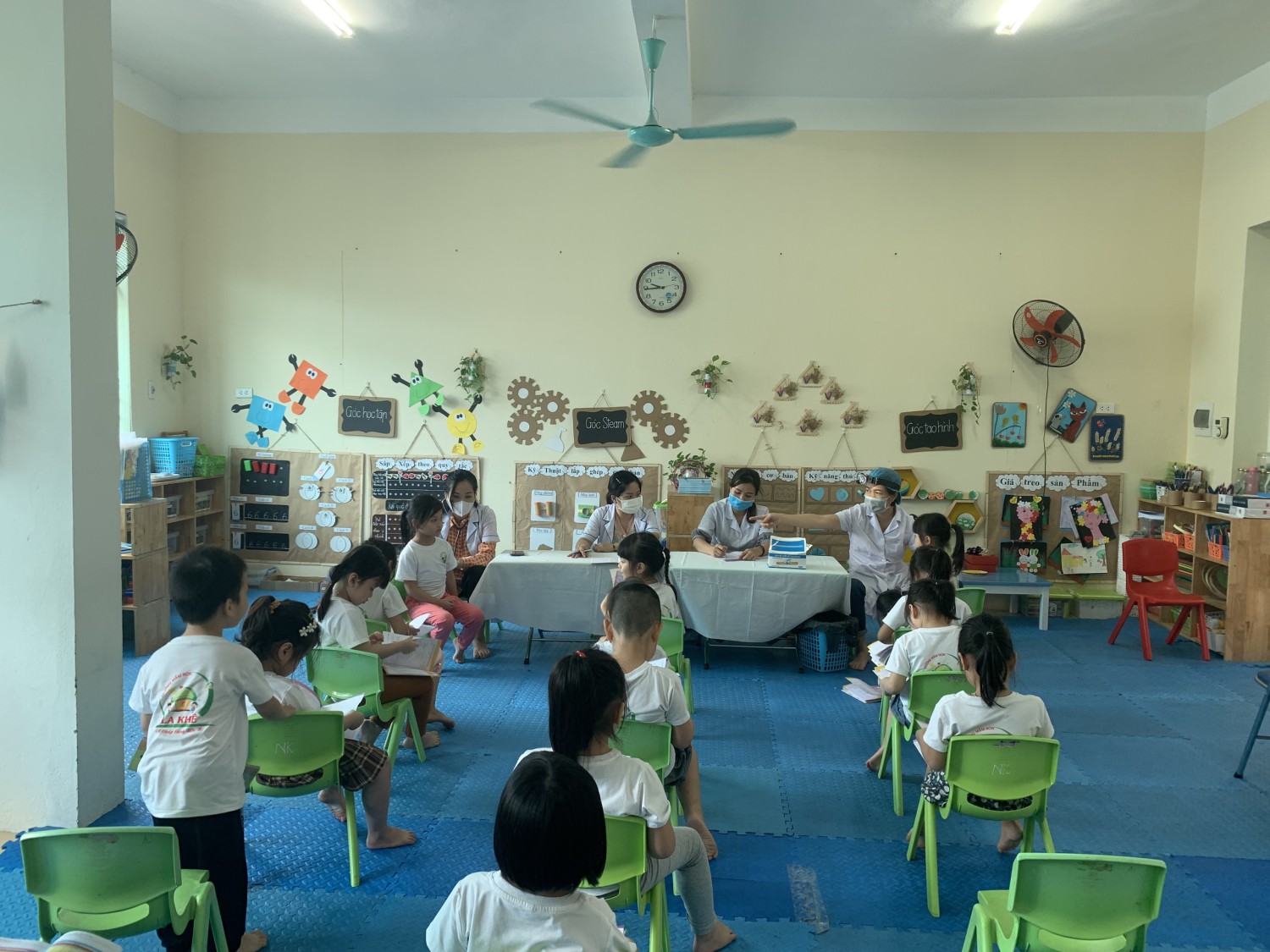 Kết quả kiểm tra sức khỏe của trẻ được các bác sỹ trong đoàn, nhân viên y tế nhà trường ghi chép cụ thể trong sổ theo dõi sức khỏe của trẻ và thông báo tới 100% phụ huynh để theo dõi tình hình sức khỏe cho con.