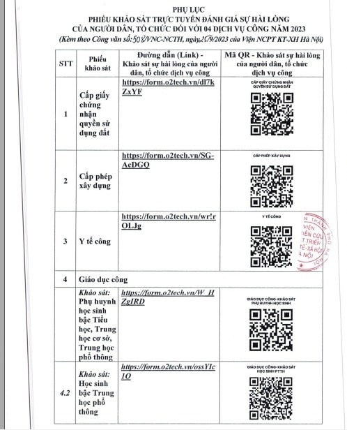 Thực hiện Công văn số 583/PGDĐT ngày 03/10/2023 của Phòng giáo dục và đào tạo Quận Hà Đông về việc "Khảo sát trực tuyến sự hài lòng của người dân, tổ chức đối với dịch vụ Giáo dục công", trường mầm non La Khê kính gửi tới các bậc phụ huynh mẫu phiếu khảo sát trực tuyến (gồm đường dẫn và mã QR) để các phụ huynh tham gia khảo sát, đánh giá.
